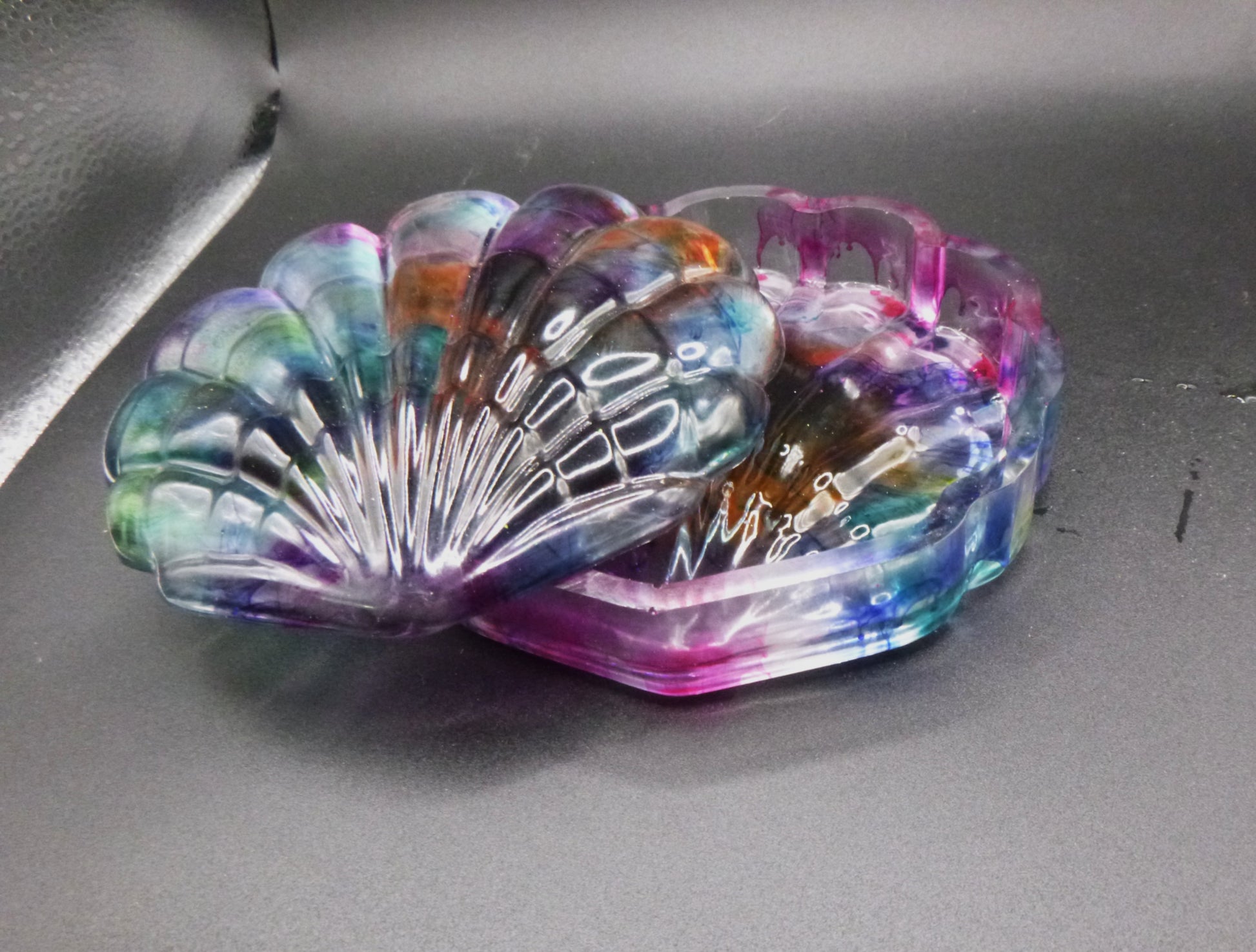 This beautifully designed shell is a one of a kind. It would add beauty to any room you put it in. Great for a gift or yourself. Its small enough for a counter, but big enough to add decor or storage.